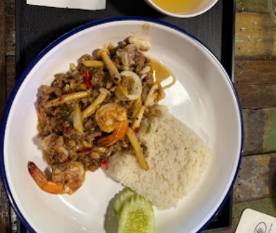 ที่นี่เน้นเมนู ข้าวกะเพราอร่อย บางขุนเทียน ที่ปรุงด้วยวัตถุดิบสดใหม่ ผัดด้วยไฟแรงให้ได้กลิ่นหอมเฉพาะตัวของกะเพราแท้ ๆ ทำให้ทุกจานมีรสชาติเข้มข้น เผ็ดกำลังดี และถูกใจคนรักอาหารจานเดียวแบบไทยแท้